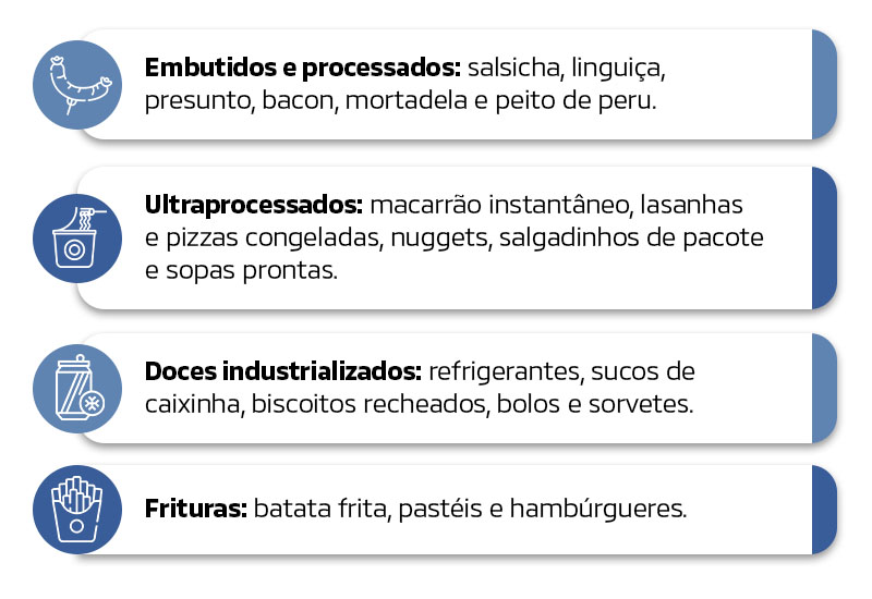 Isso ocorre porque, além de apresentarem baixo valor nutricional, esses alimentos favorecem processos inflamatórios, alteram o metabolismo e comprometem a regulação hormonal e glicêmica.